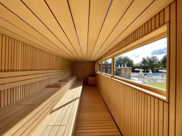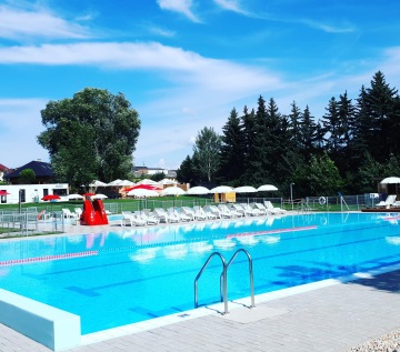 Každý den je pro vás připraven venkovní bazén 25 metrů s plaveckými dráhami a relaxační částí. Děti mohou využít malý bazén s klouzačkou a chrličem.