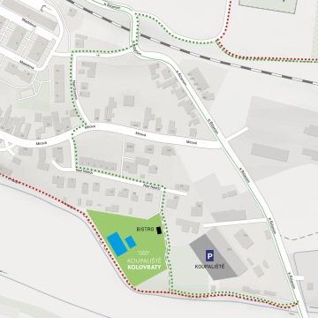 Parkovat můžete na parkovišti přístupným z ulice U Koupaliště.